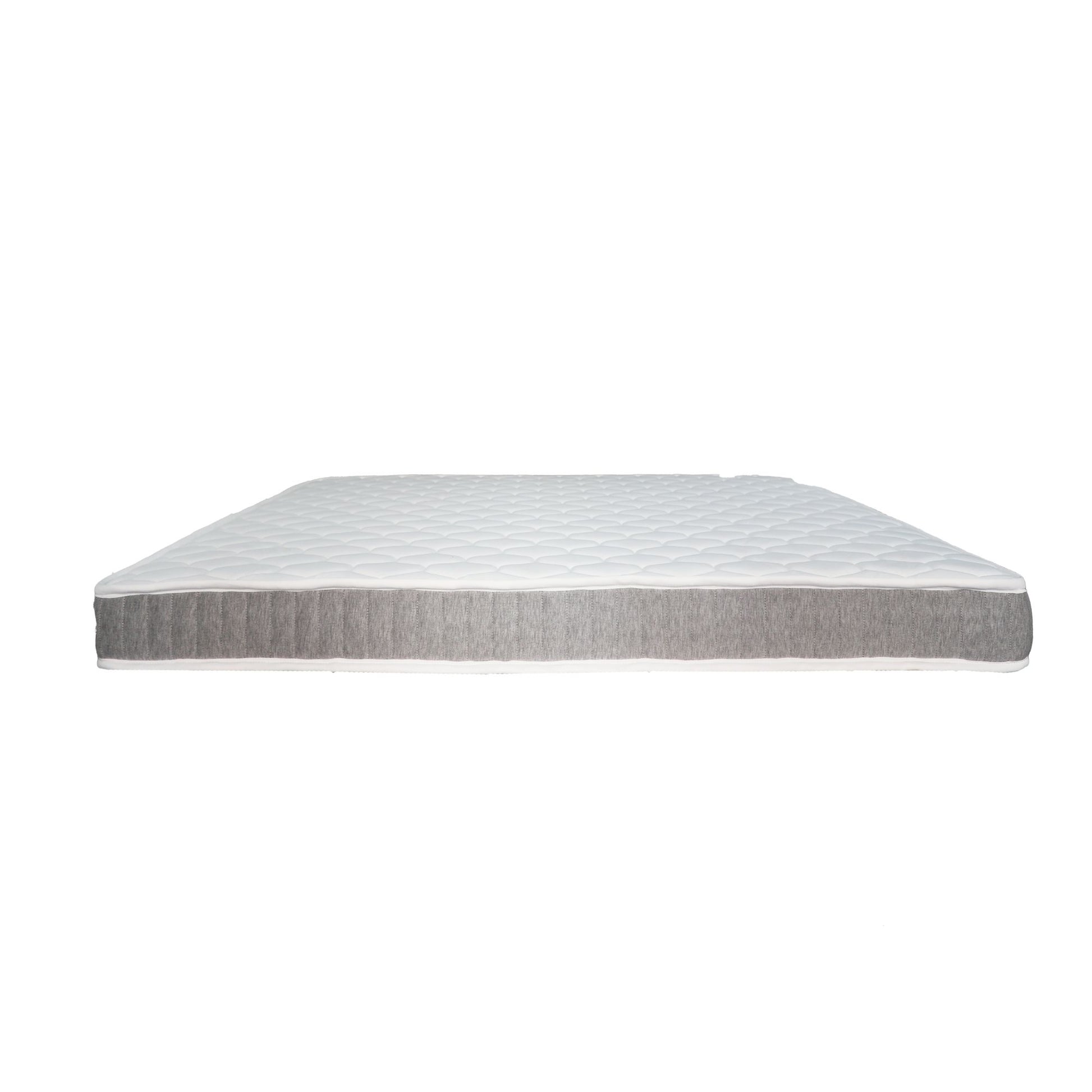 Hirune evoca a leveza e a simplicidade de uma pausa tranquila. O tampo branco, com o seu padrão hexagonal compacto e contínuo, proporciona uma sensação macia ao deitar, oferecendo apoio suave ao corpo e tornando o descanso mais calmo e agradável. As laterais cinza adicionam um contraste subtil, realçando a elegância discreta do design. Com 12 cm de altura, este colchão é perfeito para quem procura conforto prático, leve e sereno.