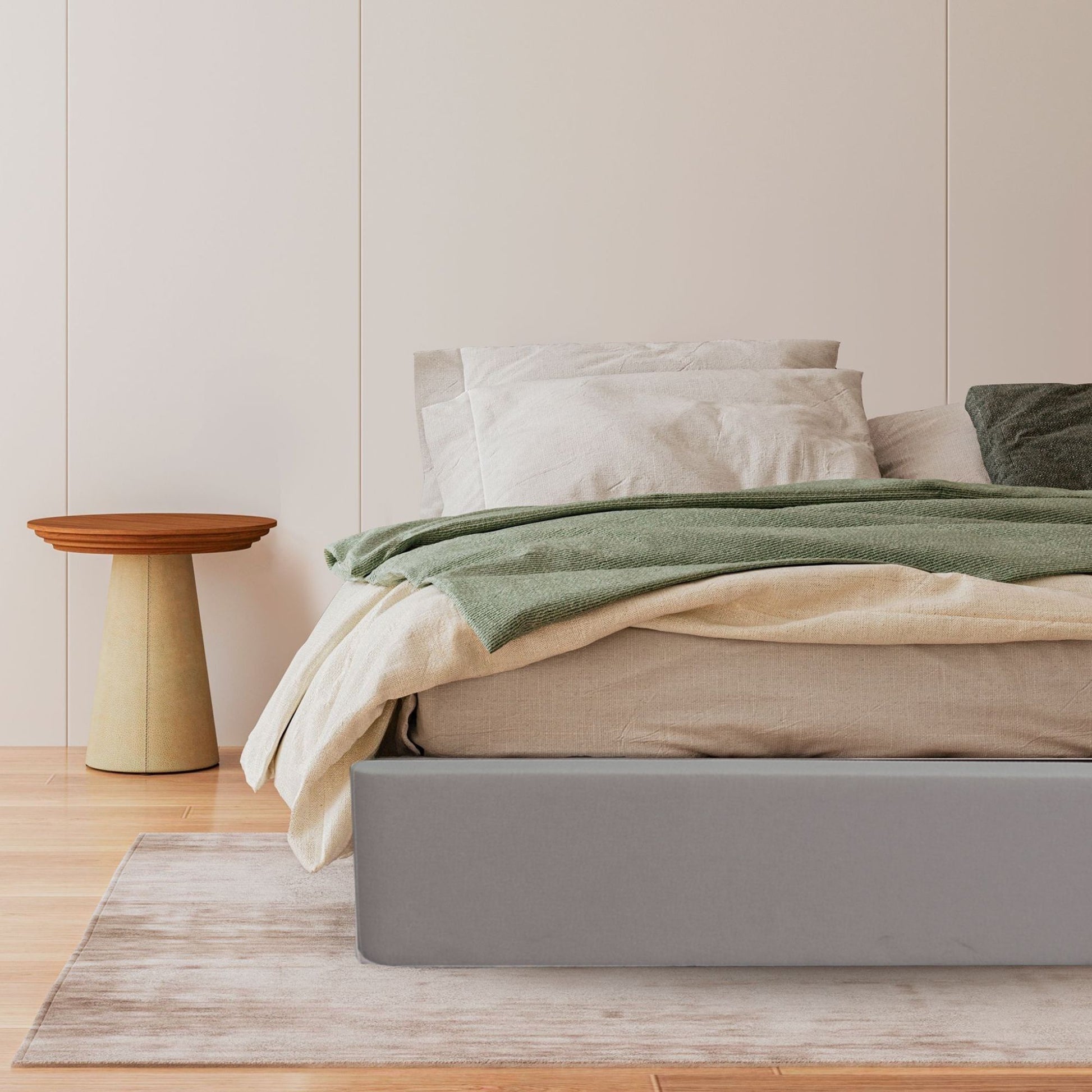 O Okinawa é a fusão perfeita de elegância e solidez, oferecendo uma base de cama que eleva o estilo do quarto com a sua estrutura minimalista. Concebido sem pernas para um visual moderno e contínuo, este sommier integra-se facilmente em qualquer decoração, criando um ambiente calmo e sofisticado. A sua estabilidade inerente garante um suporte firme e silencioso para o colchão. Mais importante, a sua base de ripas de madeira garante excelente respirabilidade e ventilação, características essenciais que prolongam a durabilidade e a higiene do colchão. Disponível em Branco, Cinza Claro, Antracite e Taupe, o Okinawa é uma escolha inteligente e elegante para quem valoriza um design simples e um suporte robusto.