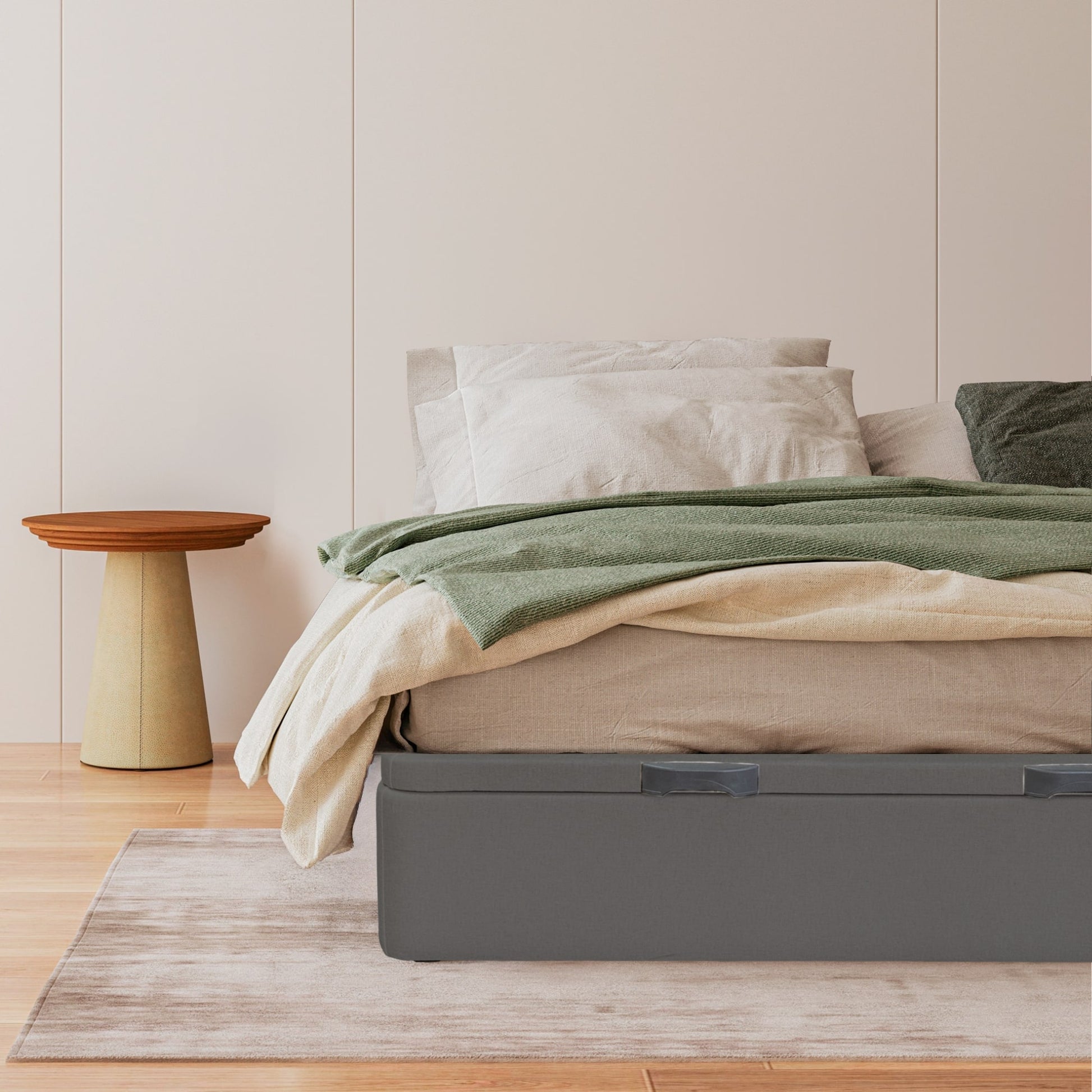 Sendai is the perfect fusion of elegance and practicality, offering a raised storage solution that maximises bedroom space without compromising on style. Designed without legs for a modern, seamless look, this bed frame blends effortlessly into any décor. Featuring an easy-to-use lifting mechanism, Sendai offers generous hidden storage, ideal for organising bedding, seasonal clothing or other essentials. Its wooden slatted base ensures excellent breathability, extending the life of your mattress. Available in White, Light Grey, Anthracite and Taupe, Sendai is a functional and stylish choice for any home.