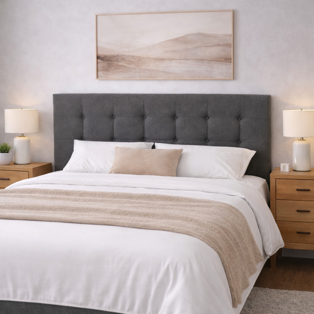Combine com os nossos Sommiers Nara e Sendai – Disponíveis em Branco, Cinza Freixo, Antracite e Taupe para uma coordenação perfeita.