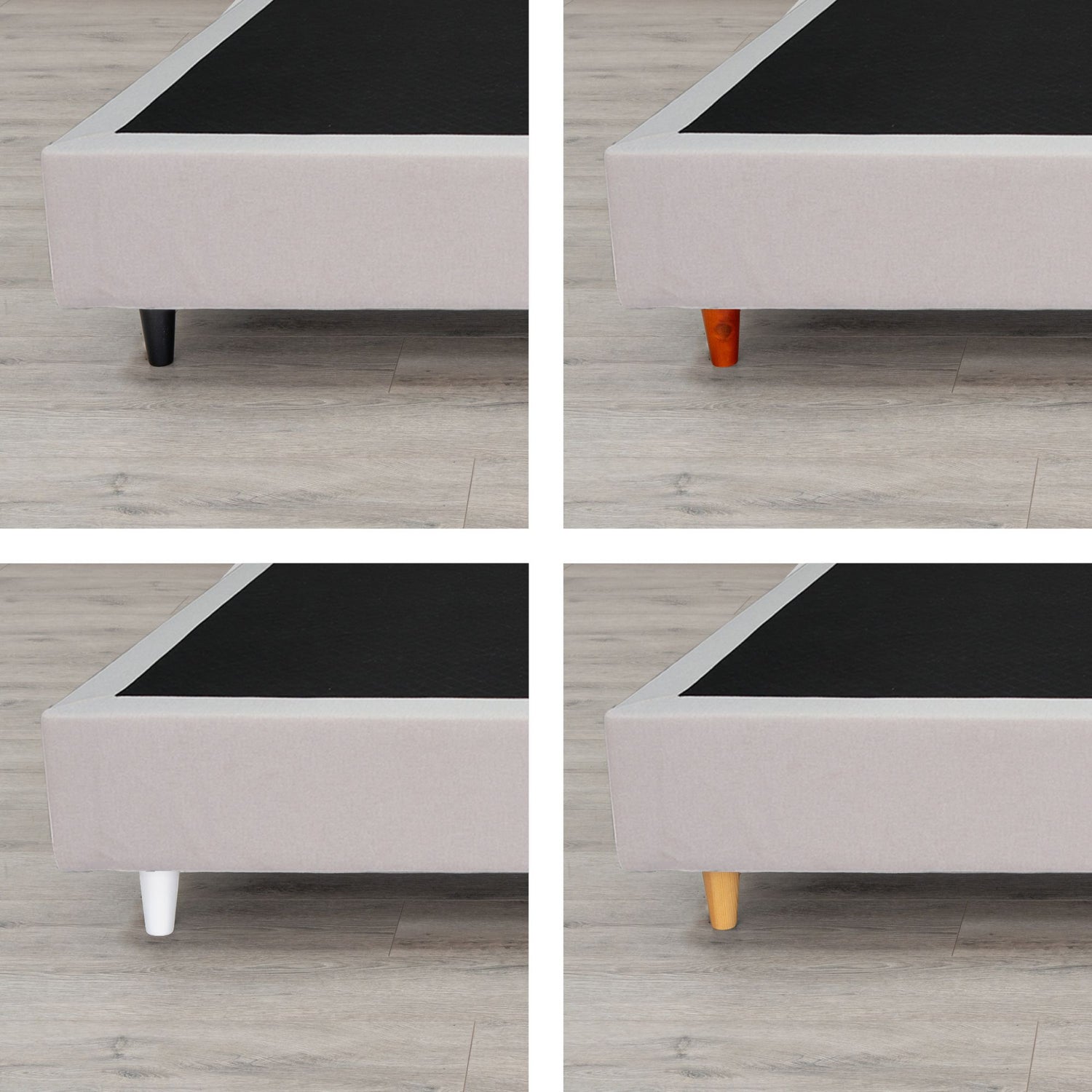 Complete o visual do seu sommier com as nossas elegantes pernas cónicas em madeira, fabricadas em pinho maciço português. Disponíveis em quatro acabamentos versáteis — Madeira Clara, Madeira Envernizada, Preto e Branco — pode combiná-las como quiser para criar a combinação perfeita que reflete o seu estilo e a decoração do seu quarto.